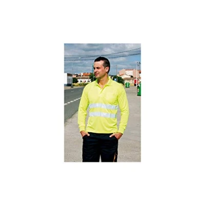 Juba Long sleeved Polo Shirt, 100% Polyester, 140 g/m2, with reflective stripes, Fluorescent yellow, Size L