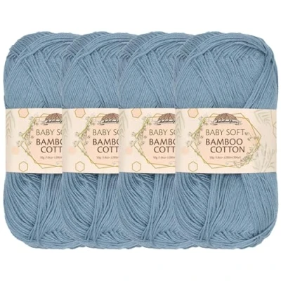 JubileeYarn Baby Soft Bamboo Cotton Yarn 50g/Skein Faded Glacier Blue 4 Skeins