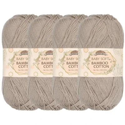 JubileeYarn Baby Soft Bamboo Cotton Yarn 50g/Skein Sand Cliff Brown 4 Skeins