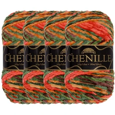 JubileeYarn Chenille Yarn Worsted Polyester 100g/Skein Valhalla 4 Skeins