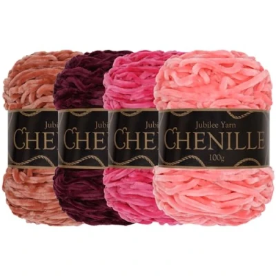 JubileeYarn Chenille Yarn Worsted Weight 100g/cake Shades of Pink 4 Cakes