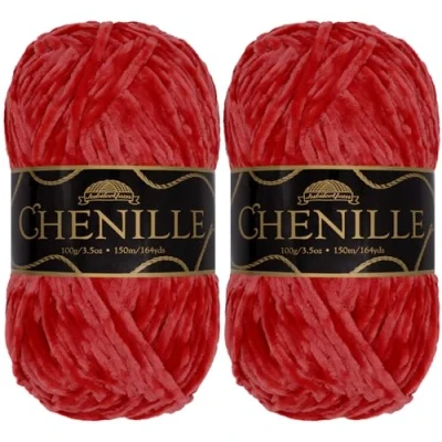 JubileeYarn Chenille Yarn Worsted Weight 100g/skein (2 Skeins, 109 Rouge)