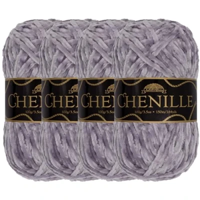 JubileeYarn Chenille Yarn Worsted Weight 100g/skein (4 Skeins, 104 Periwinkle)