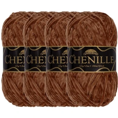 JubileeYarn Chenille Yarn Worsted Weight 100g/skein (4 Skeins, 107 Coffee Bean)
