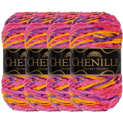 JubileeYarn Chenille Yarn Worsted Weight 100g/Skein Agartha 4 Skeins