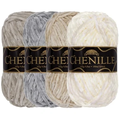 JubileeYarn Chenille Yarn Worsted Weight 100g/Skein Shades of White 4 Skeins