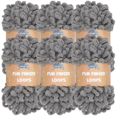 JubileeYarn Fun Finger Loops Yarn Polyester Jumbo Weight Loop 100g/Skein Grey 6 Skeins