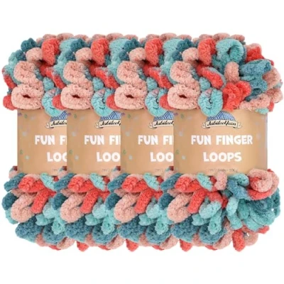 JubileeYarn Fun Finger Loops Yarn Polyester Jumbo Weight Loop 100g/Skein Hypnos 4 Skeins