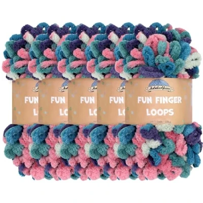 JubileeYarn Fun Finger Loops Yarn Polyester Jumbo Weight Loop 100g/Skein Lynx 5 Skeins