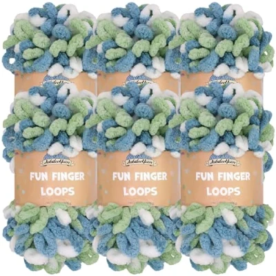 JubileeYarn Fun Finger Loops Yarn Polyester Jumbo Weight Loop 100g/Skein Multicolour Blue Green 6 Skeins