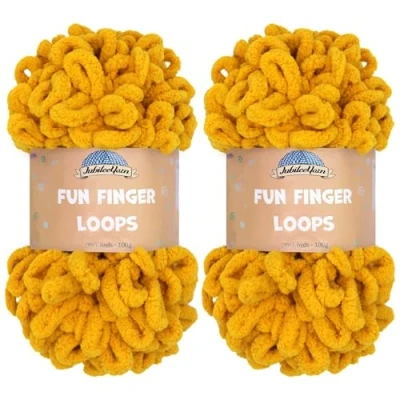 JubileeYarn Fun Finger Loops Yarn Polyester Jumbo Weight Loop 100g/Skein Mustard 2 Skeins