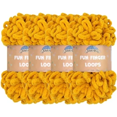 JubileeYarn Fun Finger Loops Yarn Polyester Jumbo Weight Loop 100g/Skein Mustard 4 Skeins