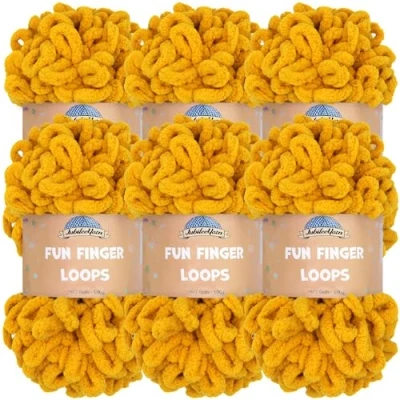 JubileeYarn Fun Finger Loops Yarn Polyester Jumbo Weight Loop 100g/Skein Mustard 6 Skeins