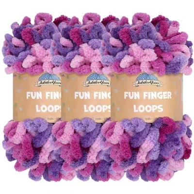 JubileeYarn Fun Finger Loops Yarn Polyester Jumbo Weight Loop 100g/Skein Nyx 3 Skeins