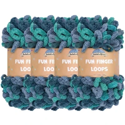 JubileeYarn Fun Finger Loops Yarn Polyester Jumbo Weight Loop 100g/Skein Poseidon 4 Skeins