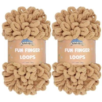 JubileeYarn Fun Finger Loops Yarn Polyester Jumbo Weight Loop 100g/Skein Sand 2 Skeins
