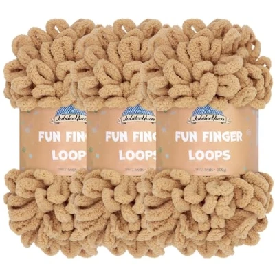 JubileeYarn Fun Finger Loops Yarn Polyester Jumbo Weight Loop 100g/Skein Sand 3 Skeins