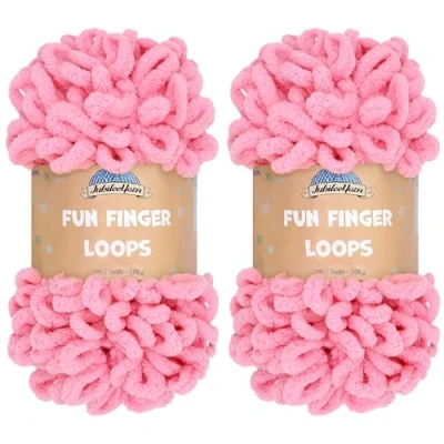 JubileeYarn Fun Finger Loops Yarn Polyester Jumbo Weight Loop 100g/Skein Tickled Pink 2 Skeins