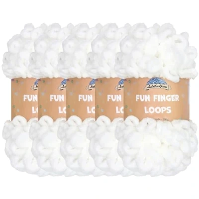 JubileeYarn Fun Finger Loops Yarn Polyester Jumbo Weight Loop 100g/Skein White 5 Skeins