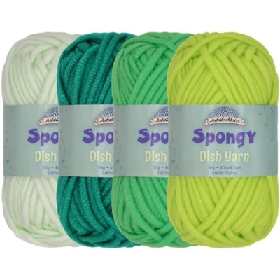 JubileeYarn Spongy Dish Yarn Worsted Nylon Dishcloth 50g/Skein Shades of Green 4 Skeins