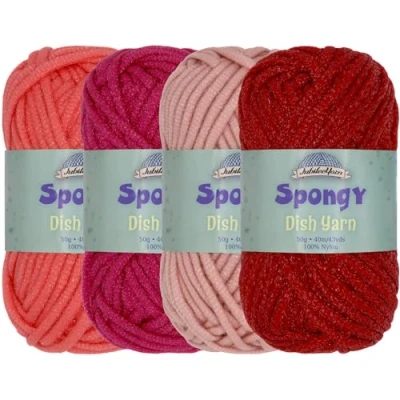 JubileeYarn Spongy Dish Yarn Worsted Nylon Dishcloth 50g/Skein Shades of Red 4 Skeins