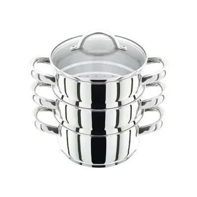 ManoManoGeneral description Judge 16cm 3 Piece Steamer is crafted from high-quality 18/10 stainless steel, making it durable and oven safe. This versatile steamer is suitable for all hob types, including induction, and features a dual-purpose base pan that can also be used as a stockpot. It comes with a glass lid for easy monitoring while cooking. Technical specifications Weight: 1,500g Height: 24.0cm Width: 16.0cm Length: 25.0cm Other information 25 Year Guarantee Dishwasher Safe