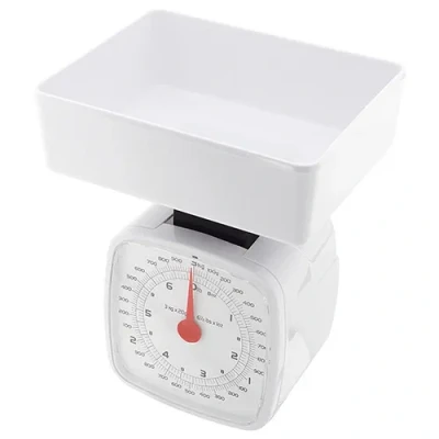 ManoManoGeneral description This Judge 3kg Traditional Kitchen Scale features an easy-to-read analogue dial that displays measurements in kilos/grams and lbs/oz. It does not require batteries and includes a zeroing function for convenience. The scale comes complete with a dishwasher-safe bowl. Technical specifications Maximum load: 3kg Dimensions: 18cm x 14cm x 22cm