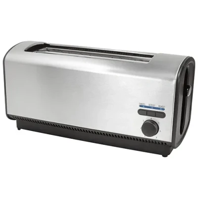 ManoManoGeneral description Judge 4 Slice Slimline Family Toaster features a sleek brushed stainless steel finish, designed for both style and functionality. This toaster is equipped with a mid-cycle cancel and pop-up mechanism, making it easy to use and control your toasting preferences. Technical specifications Brushed stainless steel finish 4 slice capacity Illuminated defrost and reheat buttons Removable tray for easy cleaning High lift feature for easy removal of toasted bread