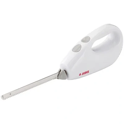 Harts of SturThe Judge Electric Carving Knife offers effortless carving and slicing, making meal prep a breeze with professional results.With easy-to-clean, dishwasher-safe removable blades, this knife simplifies your kitchen routine. The one-button operation and blade ejection make it user-friendly, allowing you to carve meats and slice bread with ease.Dimensions: 44(L) x 7(W) x 13(H) cm.Weight: 0.82kg.Power: 150W.Supplied with a manufacturer's 2-year guarantee.  Knives are not for sale to persons under the age of 18. - all knives and bladed products are delivered by Age Verified Delivery (AVD). The carrier may request proof of age in order to deliver your parcel. If proof of age is not available, or the recipient is underage, the carrier will refuse to deliver.