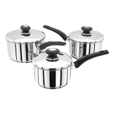 Donaghy Bros#html-body [data-pb-style=TAK78B6]{justify-content:flex-start;display:flex;flex-direction:column;background-position:left top;background-size:cover;background-repeat:no-repeat;background-attachment:scroll}Key Features Dishwasher Safe Ceramic Electric Gas Induction Oven Safe to 180 PFOA Free Product description Reliable performance from thermic bases ensuring even heat distributionSafe and secure handling due to easy grip, phenolic low-heat transmission handlesAllows for versatile cooking: from hob to ovenEasy to clean mirror polished stainless steelWith stainless steel lidsJudge HEA1 Essentials 3 Piece Saucepan Set
