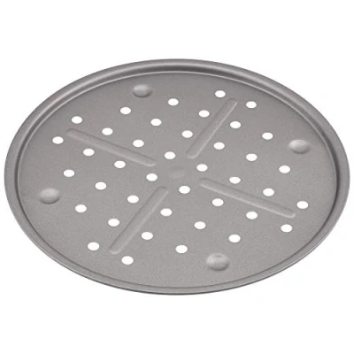 Sized for your typical 12" pizza Aerated base aids a crispier base Easy to clean non-stick that facilitates food release Teflon non-stick is PFOA Free