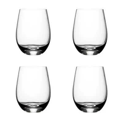 Judge Glassware 4 Piece Stemless Wine Glass Set, 530ml Handmade SodaLime Glass, Durable & Dishwasher Safe