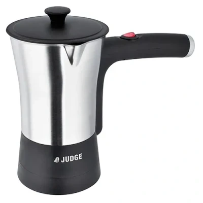 ManoManoGeneral description Judge Heated Milk Frother is designed to create perfect froth for lattes, cappuccinos, and hot chocolate with simple 'one touch' operation. Its cordless stainless steel body ensures convenience and ease of use. Technical specifications Max Capacity: 300ml Induction generated whisk with no moving mechanical parts Concealed heating element Usage Ideal for heating and frothing milk for various beverages Handy lid keeps milk warm Other information Removable whisk for easy cleaning Judge 2 Year Domestic Guarantee