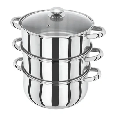 Harts of SturThe Judge Horwood Basics 18cm 3 Tier Steamer makes healthy cooking simple and efficient. Enjoy the convenience of preparing an entire meal in one pan, saving time and energy.This versatile steamer is designed for use on the hob and in the oven, allowing you to steam multiple foods simultaneously. Its thick 'hot forged' base ensures reliable performance and even heat distribution, while the hollow stainless steel handles stay cooler for safe handling.Crafted from easy-to-clean, mirror polished stainless steel, this steamer is also dishwasher safe for effortless maintenance. The vented glass lid helps prevent overboiling, making cooking a breeze.Suitable for use on induction, gas, halogen, ceramic, and solid plate hobs. Oven safe up to 240°C.Set contains 1 casserole, 2 steamers, and 1 glass lid.Weight: 1.69kg.Supplied with a manufacturer's 10-year guarantee.