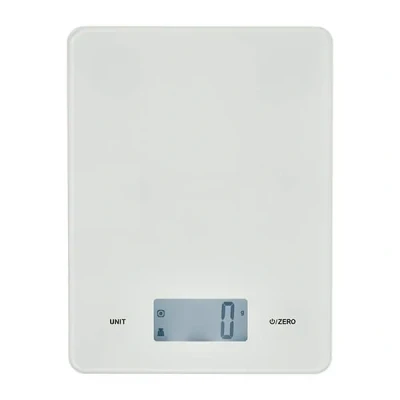 ManoManoGeneral description The Judge Kitchen Digital Scale features a sleek wipe-clean glass top with a timeless white finish. It can measure up to 5kg / 11lbs in weight and has a large screen for easy viewing of results. The scale is suitable for weighing both liquids and solids. Technical specifications Maximum weight capacity: 5kg / 11lbs Dimensions: 2(H) x 15.5(W) x 22(L)cm Usage Can be switched from grams to ounces with a simple one-touch button Features a 'tare' button to reset the measurement when needed Other information Complete with a 2-year Judge guarantee