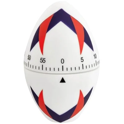AmazonMECHANICAL KITCHEN TIMER FOR COOKING IN FUN RUGBY BALL SHAPE - a realistic addition to the kitchen and an easy way to set a timer for up to 1 hour for cooking vegetables, roasting, baking and more - no batteries needed ACCURATE, EASY TIMING - simply turn the top half all the way round, then set to the number of minutes you need and wait for it to ring at the right time LOUD RINGING ALARM SOUND - you'll always know when it's time to take your dish out of the oven, as you'll hear the loud ringing tone GREAT GIFT FOR RUGBY FANS - the 3-D rugby ball shape and useful timer makes it a great Secret Santa gift, stocking filler or thank you gift for anyone who loves rugby