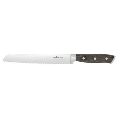 The Judge Pro 21cm Bread Knife is an essential tool for any kitchen, promising precision and ease in every slice.Crafted for those who demand professional-grade performance in the kitchen, you can trust this knife for its precision. Whether you're slicing through crusty loaves or delicate pastries, it delivers perfect results every time. The serrated carbon stainless steel blade ensures clean, precise cuts without crushing or tearing, enhancing your baking experience. Plus, the hard-wearing pakkawood handle provides a secure grip and perfect balance for effortless control.This knife is part of the trusted Judge Pro range, known for its reliability and professional-grade performance. It's also dishwasher safe for easy cleaning.This product comes with a Judge 25-year guarantee, giving you peace of mind with your purchase.  Knives are not for sale to persons under the age of 18. - all knives and bladed products are delivered by Age Verified Delivery (AVD). The carrier may request proof of age in order to deliver your parcel. If proof of age is not available, or the recipient is underage, the carrier will refuse to deliver.