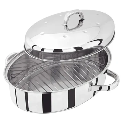 ManoManoGeneral description Judge Stainless Steel Self Basting Roaster is designed for efficient cooking, allowing for self-basting to enhance flavor and moisture retention in your dishes. Technical specifications Material: Stainless Steel Weight: 1,755 g External dimensions: (L) 34.5 x (W) 32 x (H) 18.5 cm Internal dimensions: (L) 32 x (W) 22 x (H) 15 cm