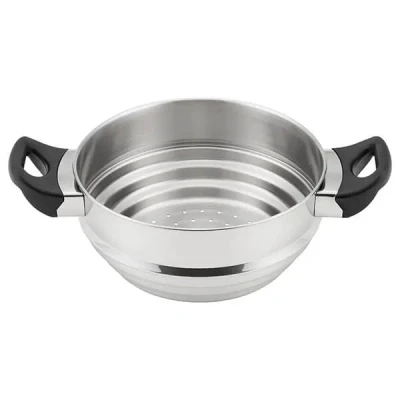 Harts of SturThe Judge Vista Open Multi Steamer is perfect for steaming vegetables, dumplings and so much more to perfection. It fits on most 16cm, 18cm and 20cm pans for versatility in the kitchen, and is made from 18/10 stainless steel for durability.Two generous-sized helper handles made from plastic allow you to transport the steamer on and off the pan with ease, without burning yourself.Oven safe up to 180°C.Dishwasher safe.PFOA/PTFE free.25 year guarantee.