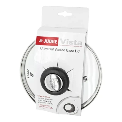 General description The Judge Vista 22cm Glass Lid is a durable replacement lid made from shatterproof glass, designed to prevent overboiling with its vented feature. It’s dishwasher safe for easy cleaning and oven safe up to 180°C for added versatility. The stay-cool handles ensure safe and comfortable handling, making this lid a practical and reliable addition to your cookware. Backed by a 25-year guarantee, it offers long-lasting quality and peace of mind. Technical specifications Dimensions: 5.5(H) x 23(W) x 23(L) cm Weight: 659g