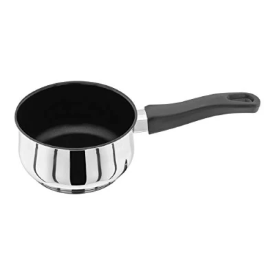 AmazonMILK PAN WITH HIGH ROUNDED SIDES - designed in Bristol, England, and made from durable 18/10 stainless steel for excellent performance UNBEATABLY TOUGH NON-STICK COATING - 'Excalibur'' is a premium coating that combines the release qualities of the world's best non-stick with the toughness of stainless steel for long-lasting performance EASY-GRIP, COOL-TOUCH, OVEN-SAFE HANDLE - Phenolic handle doesn't conduct heat like metal handles so it stays cooler to the touch, and is also oven-safe up to 180℃ INDUCTION-READY NON-STICK PAN - thick 'hot-forged' base ensures fast, even heat distribution on all kinds of stovetop including gas, halogen, ceramic, solid plate, induction or an aga
