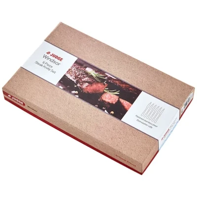 The Judge Windsor Set Of Six Steak Knives offers a perfect blend of style and function, ensuring a comfortable dining experience while cutting steak.Crafted from high quality 18/0 stainless steel, these knives feature smooth rounded edges that taper gently, providing utmost comfort during use. Their clean, contemporary design complements modern dining styles, making them a stylish addition to your table.Material: 18/0 stainless steel.Dishwasher safe.Supplied with a manufacturer's 25-year guarantee.  Knives are not for sale to persons under the age of 18. - all knives and bladed products are delivered by Age Verified Delivery (AVD). The carrier may request proof of age in order to deliver your parcel. If proof of age is not available, or the recipient is underage, the carrier will refuse to deliver.