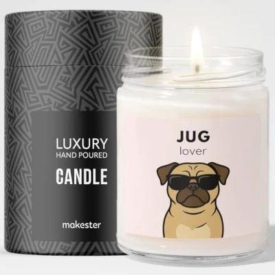 Jug Gifts Luxury Soy Wax Candle Vanilla, Jasmine, Sugared Almond Dogs in Shades Makester