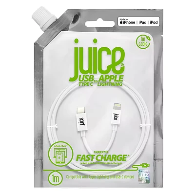 Juice 1m Apple iPhone Lightning Cable to Type C 14, Pro Max, Max and Plus 13, Mini 12 Models 11 8, 7, 6, SE iPad Airpods White