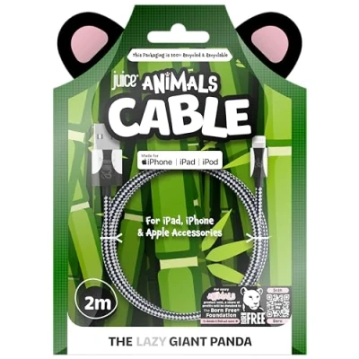 Juice Animals Apple iPhone Lightning 2M Braided Charger and Sync Cable for 14, 14 Pro, 13, 13 12, 12 Mini, SE, 11, XS, XR, X, 8, 7, 6, 5, iPad, Air, Airpods Pro (Giant Panda)