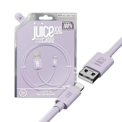 KEEP YOUR APPLE DEVICES JUICED UP - suitable for all standard USB mains plug adaptors, this extra long Apple lightning cable is compatible with iPhones from iPhone 5 onwards OFFICIALLY APPROVED BY APPLE - rigorously tested and Apple MFi certified for peace of mind, this Apple charger cable connects seamlessly with your iPhone, iPad, iPod and Air Pods for quick and easy syncing and charging without harming your devices EXTRA LONG USB TO LIGHTNING CABLE FOR EASY CHARGING - 3 metres of cable length means you don't have to sit by the plug or leave your phone, giving you freedom to carry on using your device while it charges BOLD DESIGN & GREAT QUALITY - stylish, robust and built to withstand the twists and turns of daily life, this vibrant iPhone cable makes a great accessory, adding a pop of colour to your tech that you can match to your style MINDFULLY MADE WITH 1 YEAR JUICE GUARANTEE - expertly designed and tested in the UK, Juice's high quality, durable tech is made from recyclable materials that are kinder to the planet and presented in sustainable, zero-waste recyclable packaging