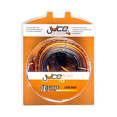Juice Car Audio JWTRU10 1200W 10 Gauge Amplifier Wiring Kit, With Speaker, Power, RCA, Ground and Connection Cables