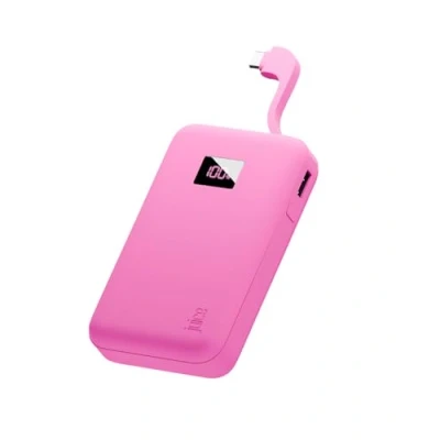 Juice Eco Integrated Power Bank, Portable Charger 12,000mAh with Built in USB C Cable & Digital Display, Fast Output, PowerBank for iPhone 15 16 17 Pro Max, Samsung, Android, iPad, DJI Pink
