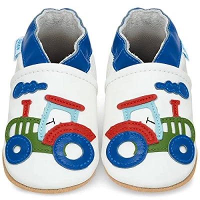 Juicy Bumbles Soft Leather Baby Shoes with Suede Soles Toddler Infant Pre Walker Crib Shoes, 12 18 Months, Tractor