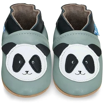 Juicy Bumbles Soft Leather Baby Shoes with Suede Soles Toddler Infant Pre Walker Crib Shoes, Panda, 12 18 Months